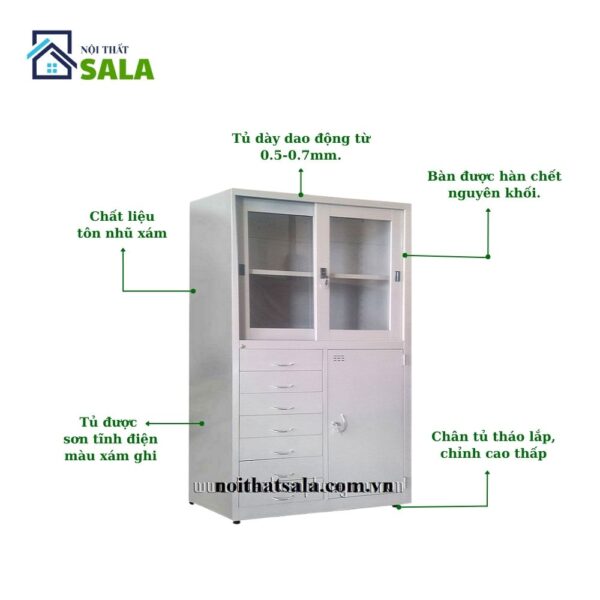 Tủ Sắt 2 Cánh Lùa Kính, 7 Hộc Kéo, 1 Cánh Mở – GIẢI PHÁP LƯU TRỮ THÔNG MINH TỪ NỘI THẤT SALA